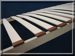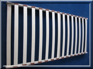 A BASIC ágyrácsunk egy robosztus hosszanti tartószerkezettel, 2,5*5,5 cm-es nyírfa rétegelt lemezből készül. A lamellái hétrétegű 8*53 mm keresztmetszetű, íves nyírfa rétegelt lemezből vannak. A lamellák végei egy műanyag papucsba, műanyag bakba vannak felfogatva a tartó keretre. Ezt a típusú ágyrácsot első sorban gyermekek, illetve könnyű és átlagos súlyú személyek részére ajánljuk. A BASIC ágyrácsunk 17 lamellából álló deréktájon besűrített elhelyezkedéssel készülnek és három darab heveder szalaggal, összefűzve egy jóval nagyobb súlyterhelést kibíró, rugalmas fekvőfelületet biztosító termékünk. Bátran ajánljuk bármelyik átlagos felnőtt személy számára is, mivel (az országban egyedülállóan csak nálunk kapható, deréktájon besűrített lamellákkal) a deréktájon lecsökkentett lamellák közötti távolságnak köszönhetően nagy mértékben megnövekedett az ágyrács súlyterhelhetősége és kényelmi érzete.